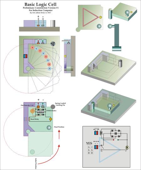 To complete my journey back to relays here is one draft of the Universal Binary Engine, it was designed to be used with a rotary commutator in mind, I was considering the technology of 1900 and the implementation of the Tesla tower as a the hub of computing the Longitudinal Ground Wave communication traffic he would have had to encounter if his tower was finished. Here are my preliminary data covering the commutator and/or relay computer. I have dubbed it “The Universal Binary Engine“, it has motoring logic built in, so a rotating system is viable, a whole new way of conveying intelligence through simple matrix connections with commutators , setting up codes for binary transmission in as many bits as needed. This would be similar to the type of computer switching system Tesla could have worked out during his Wardenclyff period, to direct the control of a complex communication system, with subscribers numbering into the hundreds of millions, not bad for pre-transistor or valve era. Each bit would be just another commutator in rows of switching array commutators, this way you can accommodate large address locations on the globe using a whole wave node number(Earth circumference wave number derived from the frequency of operation) and the directions NSEW as your location matrix. I have a vision in my mind regarding the operational frequencies and mechanical rotating frequencies to make such a system operate as a World Wireless System (NOT Radio), here is a draft PDF of one of my ideas. Here. As this was about laying the most simplest wiring and layout, where you could his own switching systems as per Patent 685953, as illustrated in my Volume I, page 343. I always draft my original designs by free hand sketches and hand written work books, while I am design the Trinary version as well this way, I only draw my work on computer long after I have cleared up any mistakes, either physically tested or carefully worked out on spread sheets.