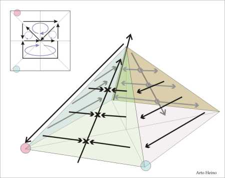 The nature of the geometric abstraction is not just pretty patterns like most modern conveyors, to Arto this is where you can find a deeper connection to the sciences. He sees a simple form such as a triangle as a new beginning to a new and non-complex form of mathematics, Quantum Arithmetic. As he implies he is only expanding on something that the geometers have tried to bury, Arto shows some of his studies in Quantum Arithmetic and the expansion of a new type of geometric discovery, where he applies it to the Giza pyramid, the Kings chamber and an Egyptian artifact that has alluded many archaeologists and geometers for the past 80 years.